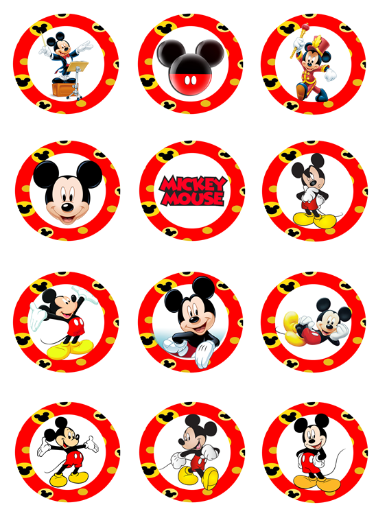 Toppers circulares Mickey Mouse para imprimir y adornar cupcakes las etiquetas de botellas y diferentes elementos de la mesa de dulces de tu fiesta o evento